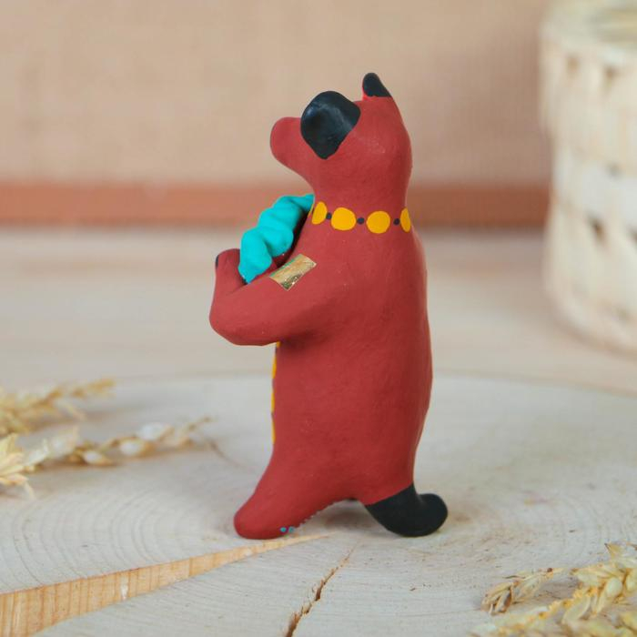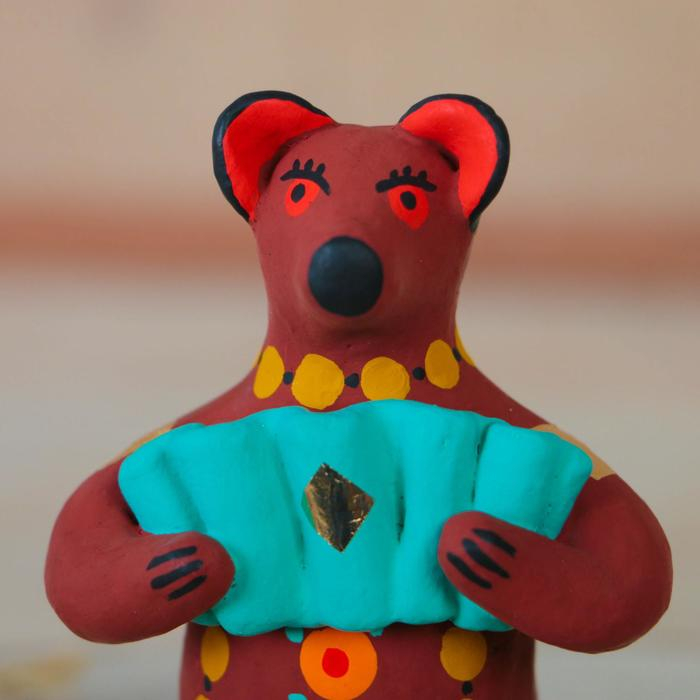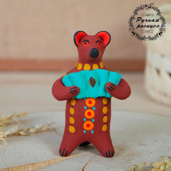 Дымковская игрушка "Медведь с цветком, с петухом, с гармонью", 11 см, микс