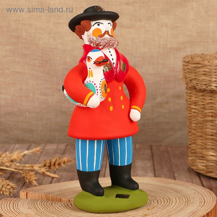 Дымковская игрушка "Старик с гусём"