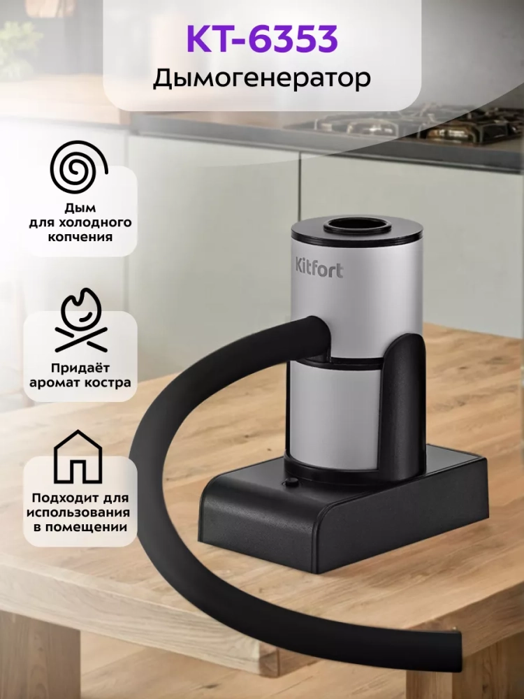 Дымогенератор для копчения Kitfort КТ-6353 предназначен для окуривания продуктов холодным дымом и получения вкуса и аромата копченых на костре продуктов. Благодаря компактной конструкции, малому весу, съемным элементам питания и общей простоте использования, вы можете взять дымогенератор с собой куда угодно и за считанные минуты придать любому блюду или напитку аромат и вкус «дымка».