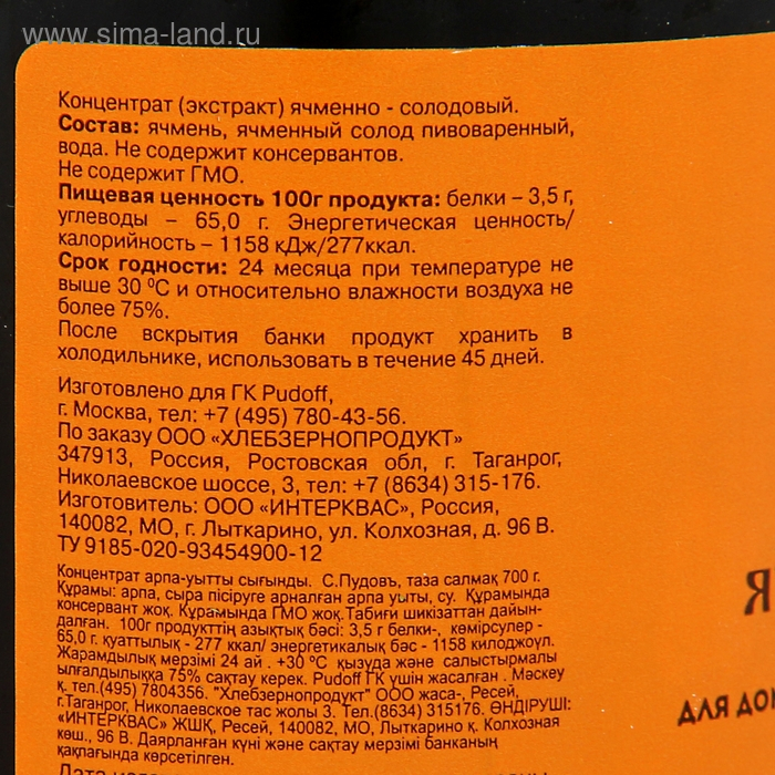 Экстракт ячменно-солодовый «С. Пудовъ», 700 г