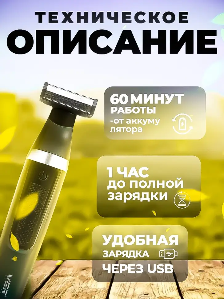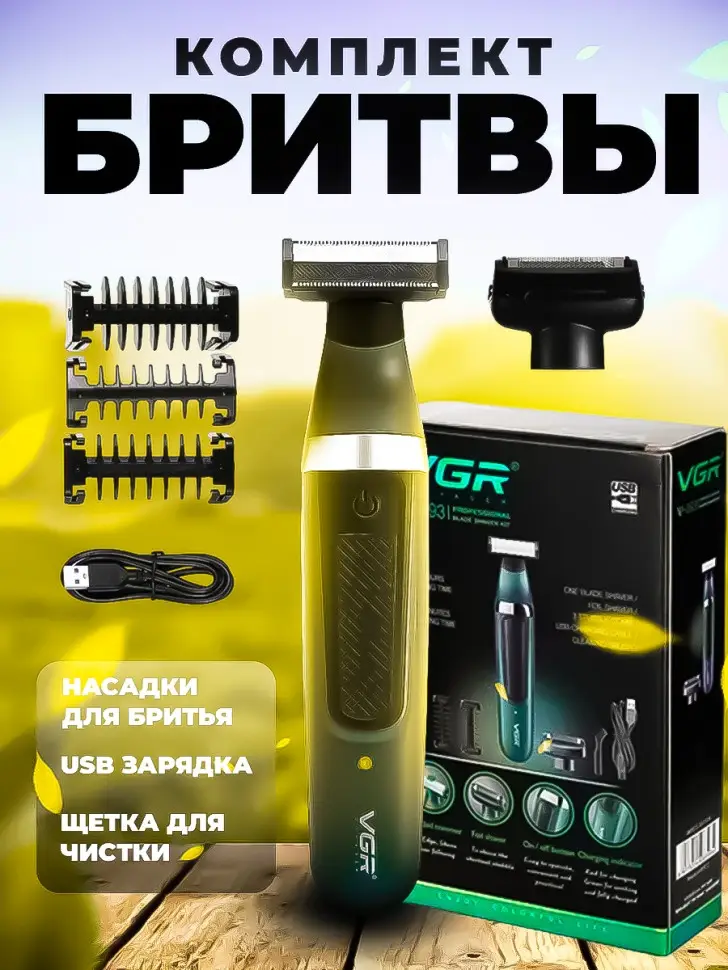 Триммер VGR V-393 - это профессиональная бритва - триммер, которая будет незаменима дома и в путешествиях. Бритва защищена от воды IPX5. Триммер для бороды и усов можно с легкостью использовать в душе. Эргономичная ручка электробритвы имеет нескользящую поверхность и удобно сидит в руке. Этот триммер для лица подходит для сухого и влажного бритья. Его легко очищать под проточной водой. Зарядить бритву для мужчин электрическую можно от USB, что очень удобно в путешествиях. Электро бритва для мужчин имеет улучшенные лезвия для аккуратной стрижки любого типа волос. Преимущества триммера для бритья: Плавающая головка и минимальный вес компактного триммера для бороды обеспечивают отличную маневренность и высокий комфорт бритья. Уникальная сеточка 0,1 мм на лезвиях предохраняет от раздражения даже самые нежные участки кожи. Шейвер для бритья позволяет безопасно брить в области подмышек, груди, живота, плеч, паха и ног. Для этого бритвенный станок имеет в комплекте 2 бреющих головки и 3 насадки: 1/3/5 м.Зарядное устройство USB, 500 мАч литиевая батарея, Материал лезвия: лезвие из углеродистой стали, Сменные насадки: 1/3/5 мм, Тип: перезаряжаемый, Время использования: 90 минут, Время зарядки: 1,5 часа, Водонепроницаемый IPX5, Материал: АБС-пластик.
