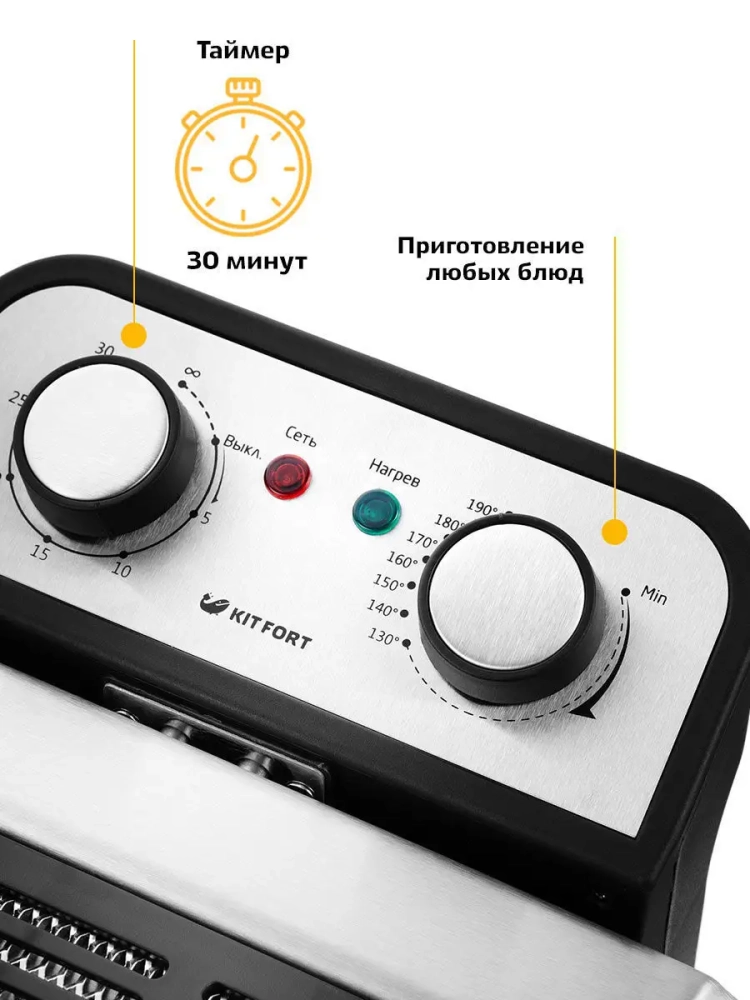 Фритюрница электрическая Kitfort КТ-2025 — это идеальное решение для любителей хрустящих и аппетитных блюд. С мощностью от 2740 до 3270 Вт, она обеспечивает быстрое и равномерное приготовление продуктов в глубоком слое горячего масла. Регулятор позволяет плавно устанавливать температуру приготовления, что делает процесс более контролируемым и удобным. Эта фритюрница оснащена тремя корзинами: одной большой и двумя маленькими, которые можно использовать одновременно для приготовления различных блюд. Это особенно удобно для тех, кто хочет разнообразить свое меню. Фритюрница Kitfort позволяет готовить картофель фри, картошку по-деревенски, чипсы и множество других вкусностей — от рыбы до куриных крылышек. Особенность модели КТ-2025 заключается в наличии "холодной зоны" между чашей и нагревателем. Это пространство предотвращает перегрев корпуса устройства и сохраняет масло чистым дольше благодаря осадкам на дне чаши фритюрницы. Фритюрница оборудована защитой от перегрева: термостат автоматически отключит устройство при достижении критической температуры. Боковые ручки из термостойкой пластмассы обеспечивают безопасное использование прибора даже при высоких температурах. Kitfort КТ-2025 — это не просто электро прибор для жарки, это ваш надежный помощник в приготовлении разнообразных блюд во фритюре с минимальным содержанием масла!