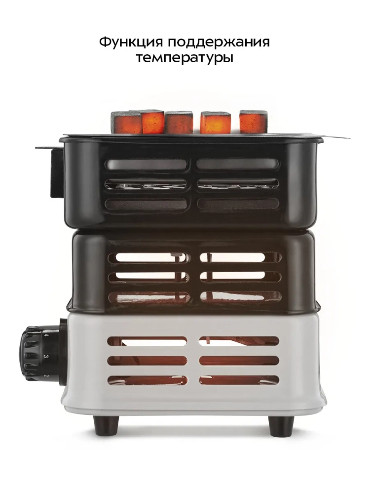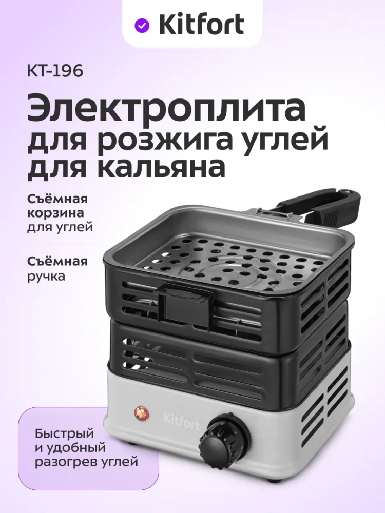 Электрическая плита для розжига углей для кальяна Kitfort КТ-196 поможет быстро и удобно разогреть угли для кальяна. Электрическая плита для розжига углей убережет вашу кухонную плиту от повреждений и загрязнения пеплом. Время разогрева углей составляет 5–8 минут. Угли укладываются в специальную корзину для углей.