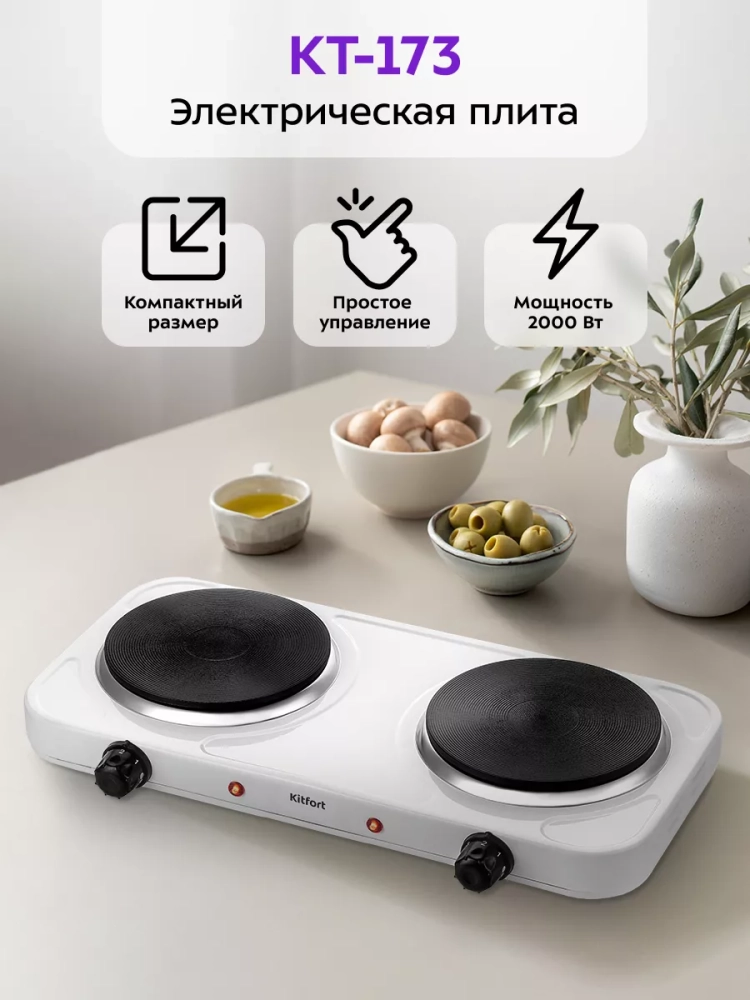 Электрическая плита Kitfort КТ-173 поможет приготовить блюда самой разнообразной кухни. Плита КТ-173 компактная и простая в управлении, поэтому с приготовлением на ней справится любой. На плите можно готовить в любом месте, где есть электричество, это делает плиту универсальной и простой в использовании. Компактные размеры плиты позволят использовать ее на любой кухне, даже самой маленькой.