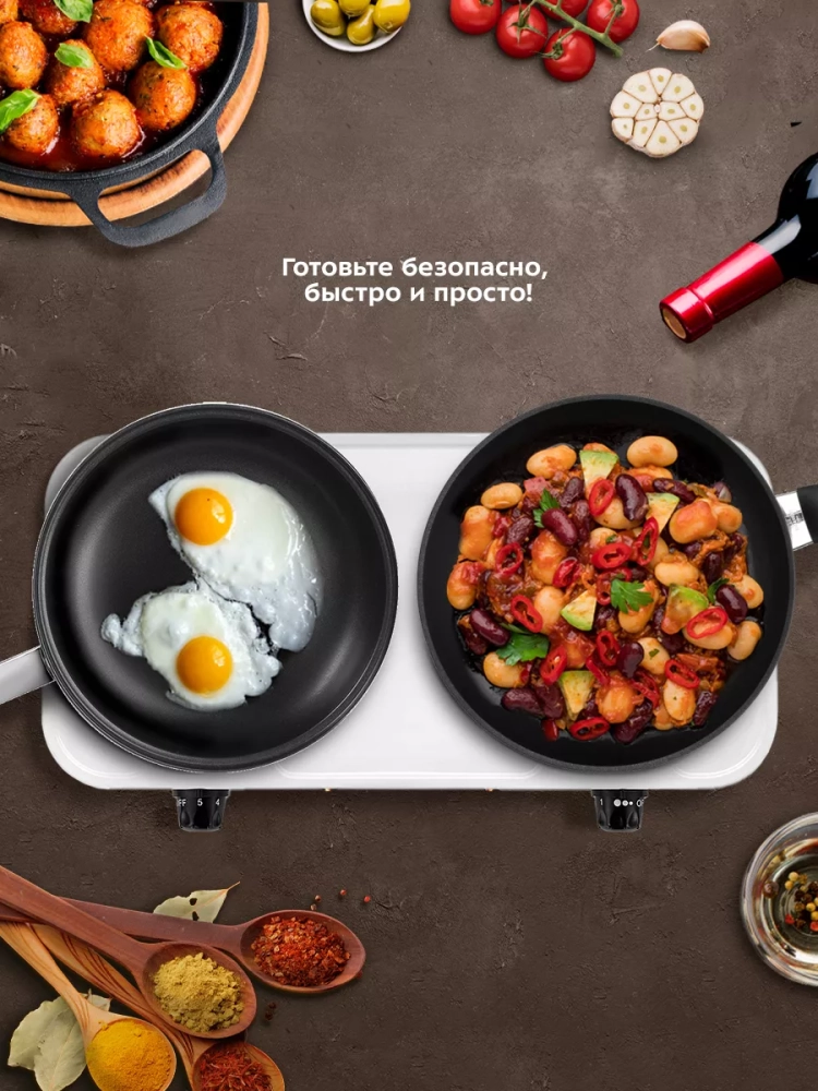 Регулировка температуры позволяет настроить нагрев для приготовления любых блюд. Легко и быстро настроив температуру, вы можете жарить, тушить или варить. Прямой нагрев позволяет использовать любую металлическую посуду, даже алюминиевые сковороды.
