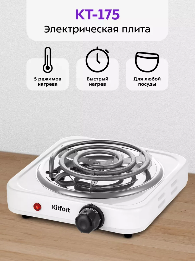 Электрическая плита Kitfort КТ-175 поможет приготовить блюда самой разнообразной кухни. Плита КТ-175 компактная и простая в управлении, поэтому с приготовлением на ней справится любой. На плите можно готовить в любом месте, где есть электричество, это делает плиту универсальной и простой в использовании. Компактные размеры плиты позволят использовать ее на любой кухне, даже самой маленькой.