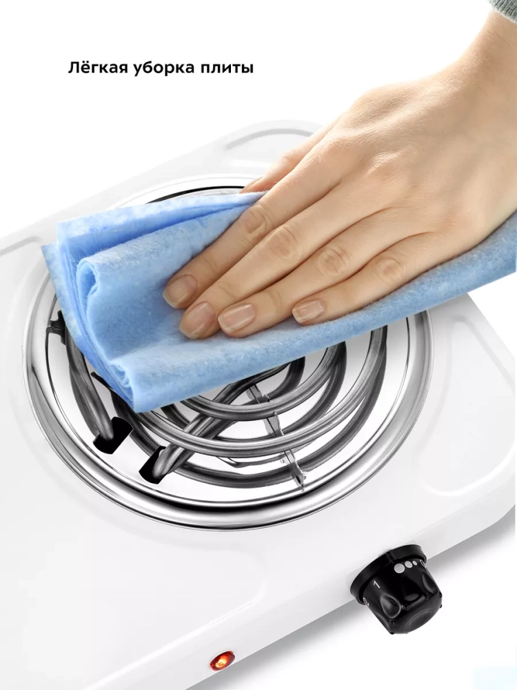 Корпус плиты выполнены из металла, благодаря этому плиту легко очистить от загрязнений. Конфорки представляют из себя 2 ТЭНа.