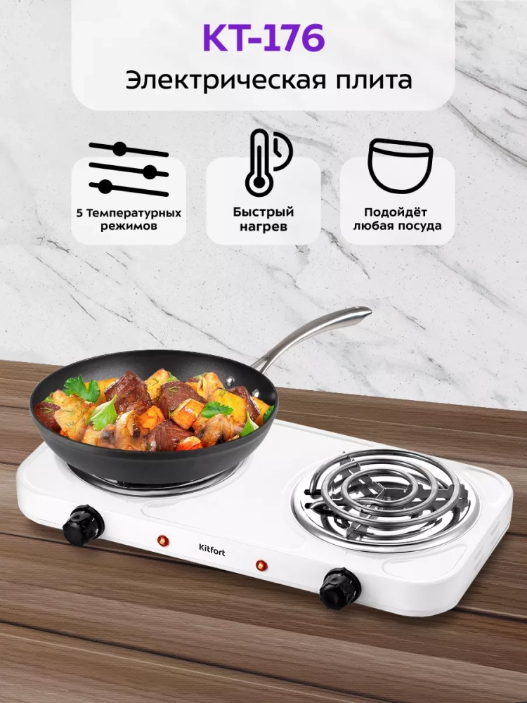 Электрическая плита Kitfort КТ-176 поможет приготовить блюда самой разнообразной кухни. Плита КТ-176 компактная и простая в управлении, поэтому с приготовлением на ней справится любой. На плите можно готовить в любом месте, где есть электричество, это делает плиту универсальной и простой в использовании. Компактные размеры плиты позволят использовать ее на любой кухне, даже самой маленькой.