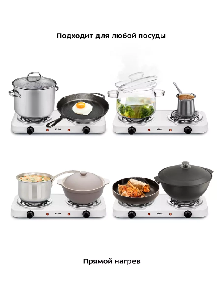 Регулировка температуры позволяет настроить нагрев для приготовления любых блюд. Легко и быстро настроив температуру, вы можете жарить, тушить или варить. Прямой нагрев позволяет использовать любую металлическую посуду, даже алюминиевые сковороды и кастрюли.