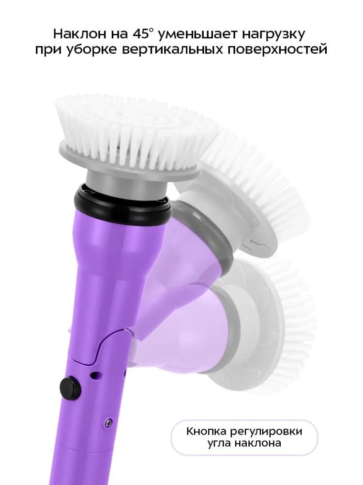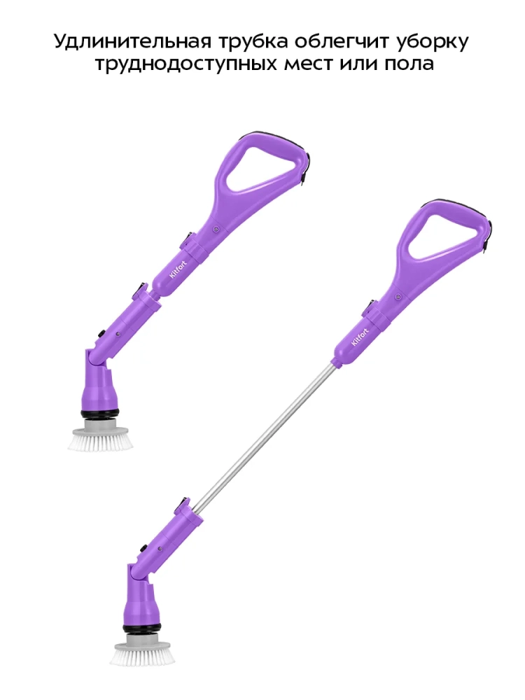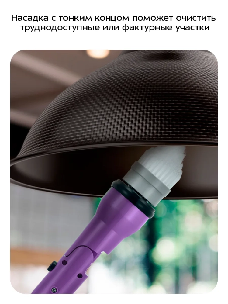 Щетку для уборки удобно держать за ручку во время уборки. Угол наклона насадки регулируется, благодаря чему можно с легкостью очищать труднодоступные места, наклонные, горизонтальные и вертикальные поверхности. Вы также можете установить удлинительную трубку, чтобы вам было удобнее работать с большими поверхностями, например, при мытье плинтусов.