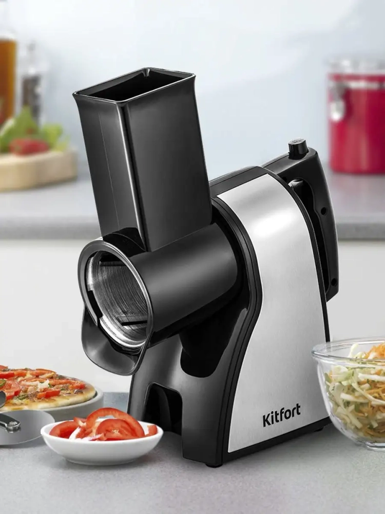 Электротерка Kitfort оснащена несколькими насадками, которые позволяют выполнять разнообразные задачи: шинковка, нарезка и измельчение. Эти кухонные приборы идеально подходят для приготовления салатов, гарниров и других блюд из овощей. Электрическая терка обеспечивает равномерное измельчение, благодаря чему ваши блюда всегда будут выглядеть аппетитно и профессионально.