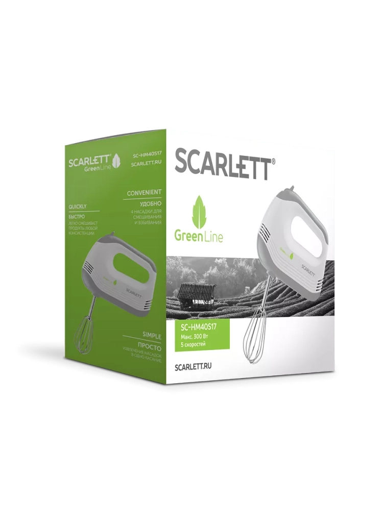 Ручной электрический миксер Scarlett - это надежный и мощный помощник на кухне для любой кондитерской задачи. С максимальной мощностью 300 Вт этот прибор легко справляется с взбиванием белков, кремов и легкого теста. Он обладает пятью скоростными режимами, которые обеспечивают удобство в работе, а также режимом TURBO, который усиливает вращение насадок и повышает эффективность обработки ингредиентов.
