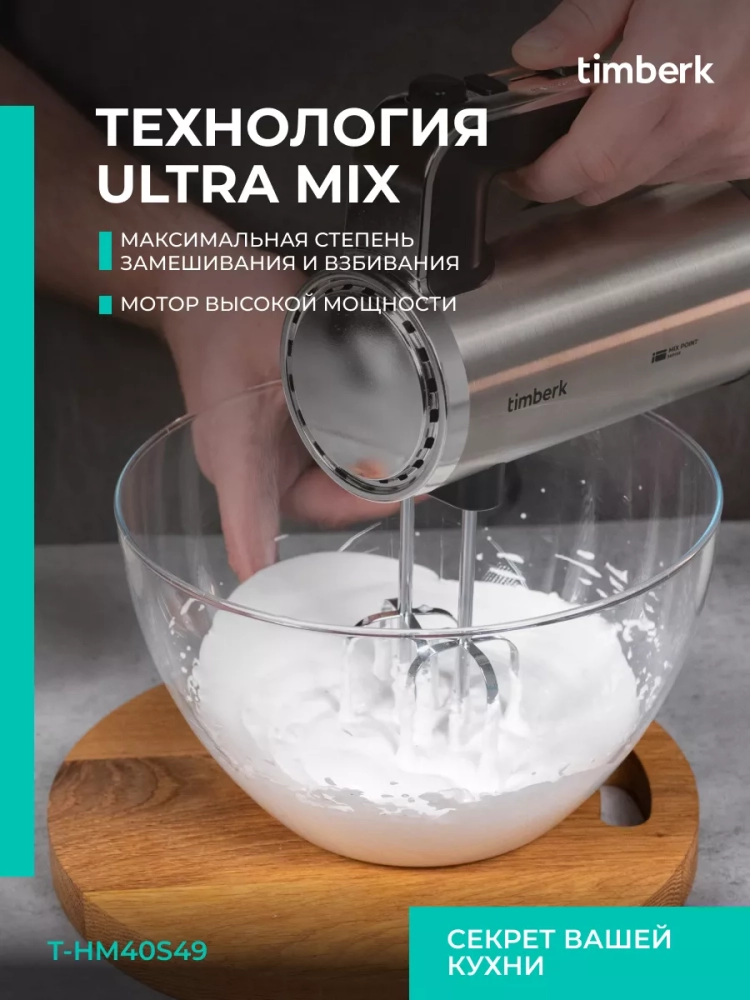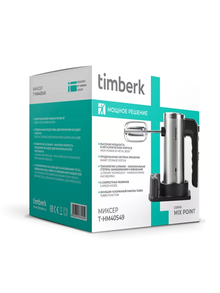 Миксер Timberk T-HM40S49 - высокая мощность в металлическом корпусе. Технология ULTRAMIX, обеспечивающая высокую скорость вращения насадок, помогает получить максимальный результат. Прибор быстро и качественно справляется со своими задачами благодаря 5 скоростным режимам. Для обработки большего объема продуктов предусмотрена функция ускоренной работы TURBO.
