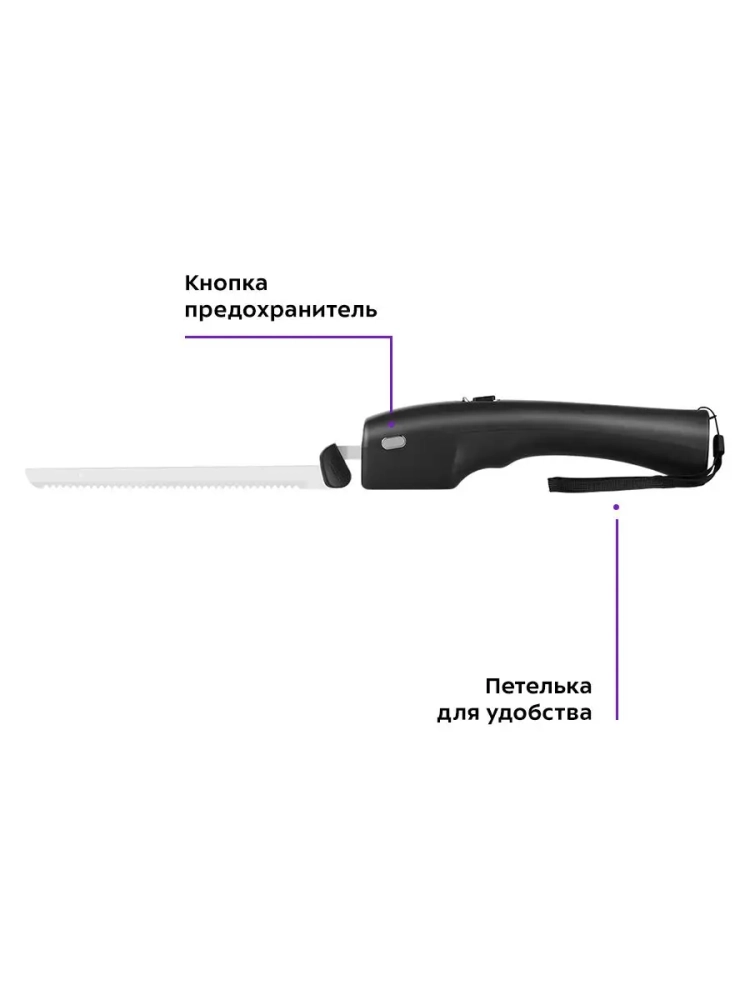 Модель КТ-4074 оснащена кнопками снятия ножей для их легкого и безопасного извлечения из корпуса. В данной модели предусмотрен переключатель безопасности. Чтобы включить нож, необходимо передвинуть вверх переключатель, тогда можно будет нажать на кнопку включения.