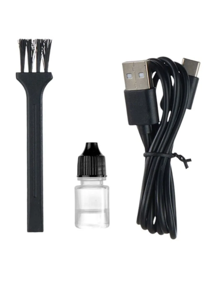 В комплекте: смазочные материалы, щеточка для чистки, кабель для зарядки.