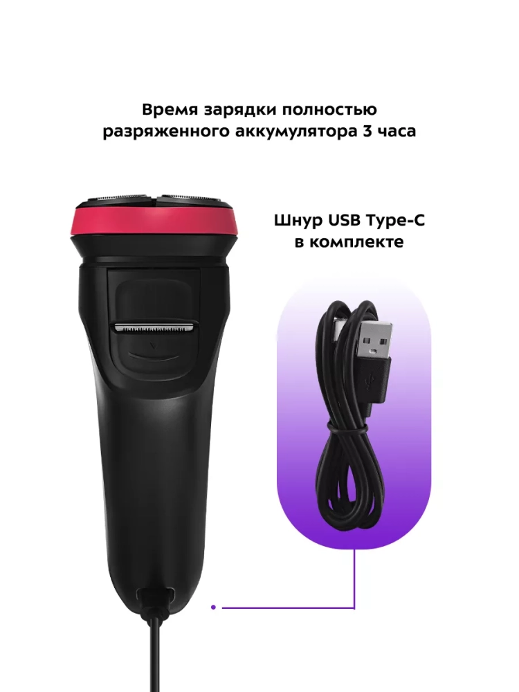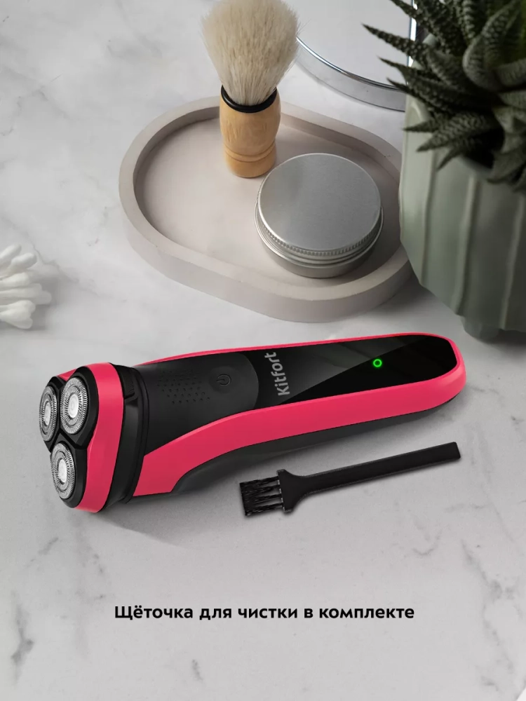 В комплекте к бритве идет щеточка для чистки. С ее помощью вы можете с легкостью ухаживать за бритвой и поддерживать ее в чистоте и исправном состоянии.