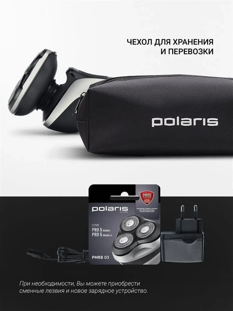 Электробритва Polaris PMR 0307RC с 5D-системой повторения контуров лица обеспечивает максимально чистое и быстрое бритье. Оснащена уникальной плавающей конструкцией бритвенной насадки PRO 5 BLADES и супермягкими кольцами для гладкого скольжения без раздражения. 3 плавающие роторные головки с плавающими бритвенными лезвиями образуют двойной контур бритья, а радиальная заточка 2-х лезвий не дает им забиваться на протяжении всего времени бритья. Прибор предназначен для сухого и влажного бритья. Работает как от сети, так и от аккумулятора. Время работы в беспроводном режиме без подзарядки - до 90 минут (или 29 сеансов бритья). Контролировать уровень заряда удобно благодаря дисплею с индикатором на корпусе бритвы. Полная зарядка батареи от нулевого показателя до 100% займет всего 90 минут. В комплекте с бритвой идет чехол, который упрощает хранение и перевозку электробритвы, а также защищает ее от пыли и загрязнений.