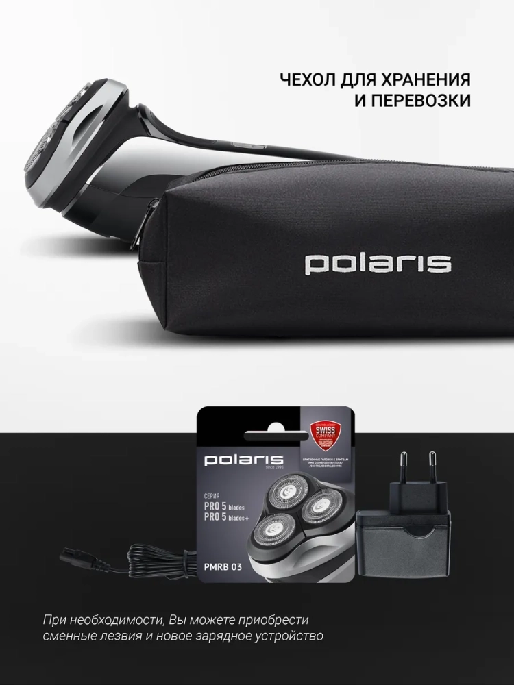 В комплекте имеется щетка для чистки и дорожный чехол для хранения и перевозки, что позволяет брать мужскую электробритву с аксессуарами с собой в дорогу. Набор для ухода за лицом Polaris станет отличным подарком для любого мужчины (мужа, папы, дедушки, друга) на День рождения, 23 февраля или другой праздник.