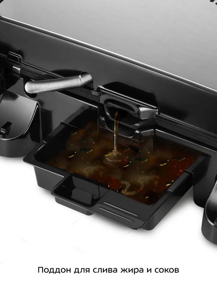 Данная модель оснащена поддоном для слива жира и сока, которые выделяются в процессе приготовления продуктов.