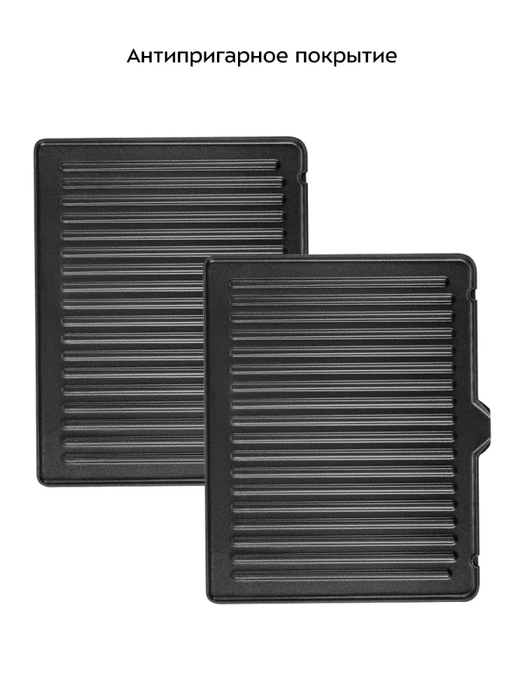На панели нанесено антипригарное покрытие, что позволяет готовить с минимальным количеством масла. Такое покрытие также облегчает процесс чистки панелей.