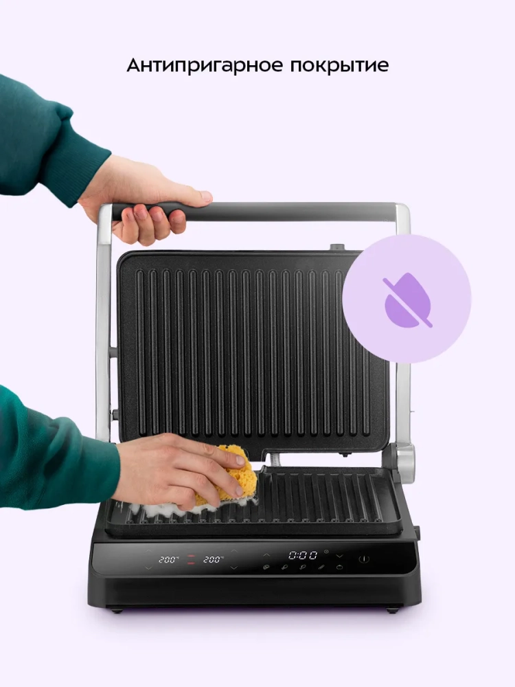 Электрогриль Kitfort отличается высокой мощностью в 2000 Вт, что гарантирует быстрое и качественное приготовление пищи. Съемные панели изготовлены из антипригарного материала, что предотвращает пригорание и облегчает процесс чистки. Это делает электрический гриль идеальным выбором для ежедневной готовки на вашей кухне.