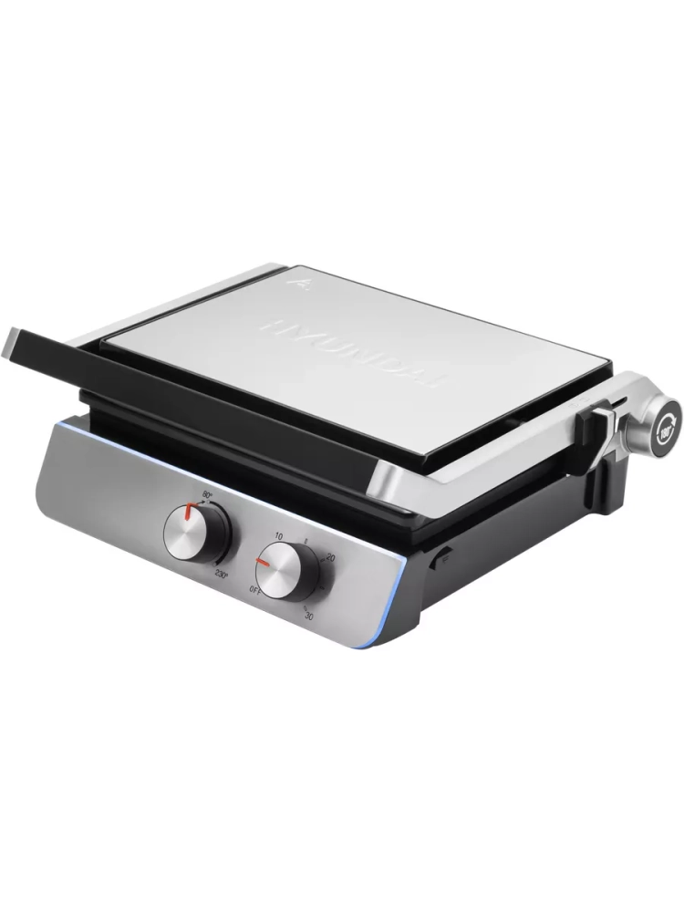 Электрогриль Hyundai HYG-4046 черный/серебристый, мощность 2200Вт, нагревательный элемент: ТЭН С помощью электрогриля можно приготовить мясо, рыбу, бутерброды, сэндвичи, тосты, овощи и многое другое. Ребристая поверхность и высокая температура панелей способствуют быстрому приготовлению и проявлению характерного «полосатого» рисунка на продуктах. Регулировка температуры позволит подобрать оптимальную для каждого типа продуктов, а таймер проконтролировать процесс степени прожарки/обжарки.
