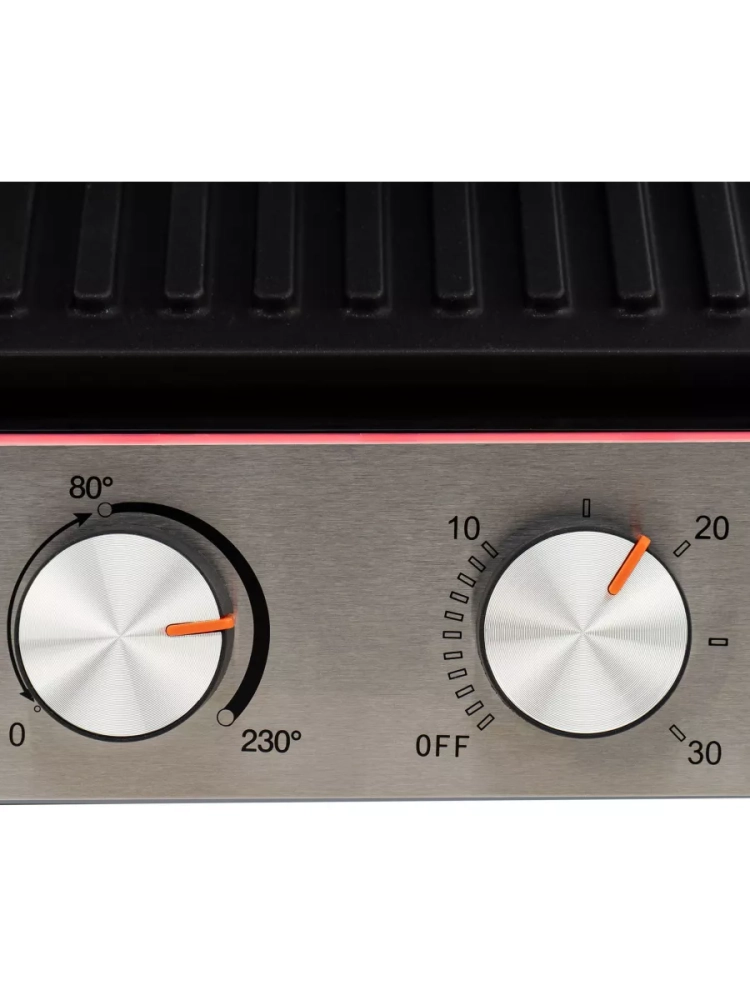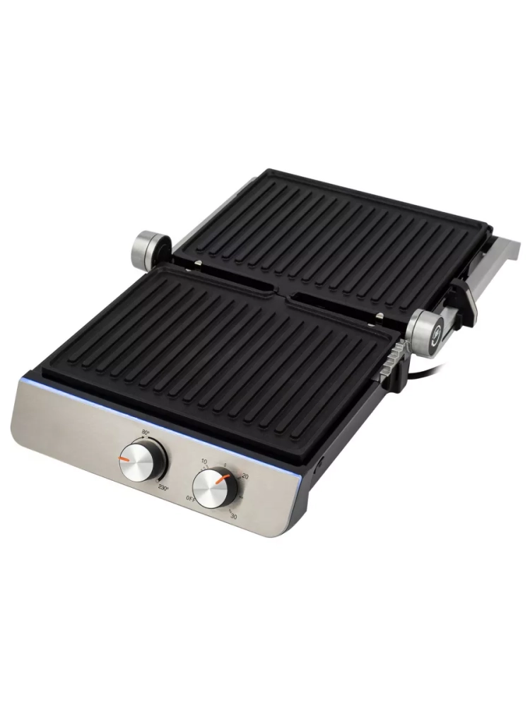 Яркая LED индикация сигнализирует о разогреве и готовности к работе. С помощью электрогриля можно приготовить мясо, рыбу, бутерброды, сэндвичи, тосты, овощи и многое другое. Ребристая поверхность и высокая температура панелей способствуют быстрому приготовлению и проявлению характерного «полосатого» рисунка на продуктах. Панели имеют антипригарное покрытие с двух сторон, их можно мыть в посудомоечной машине при температуре не выше 60°С.