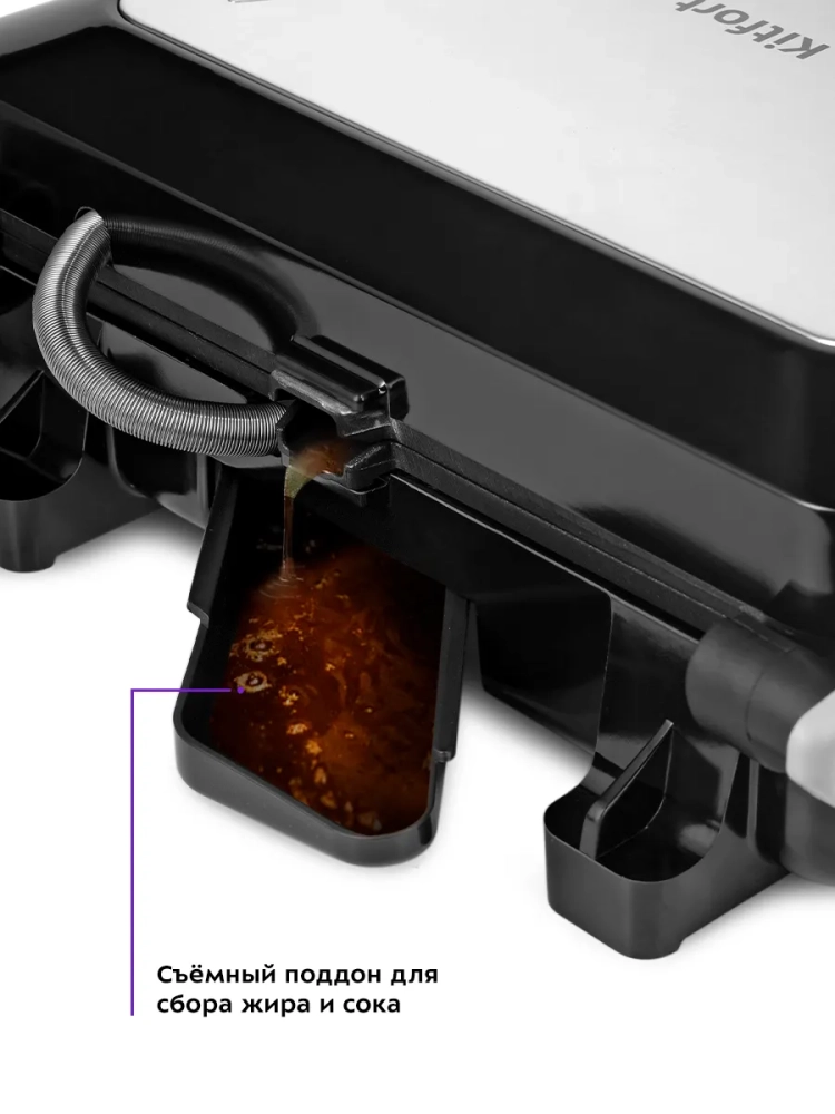 Данная модель оснащена поддоном для слива жира и сока, которые выделяются в процессе приготовления продуктов.