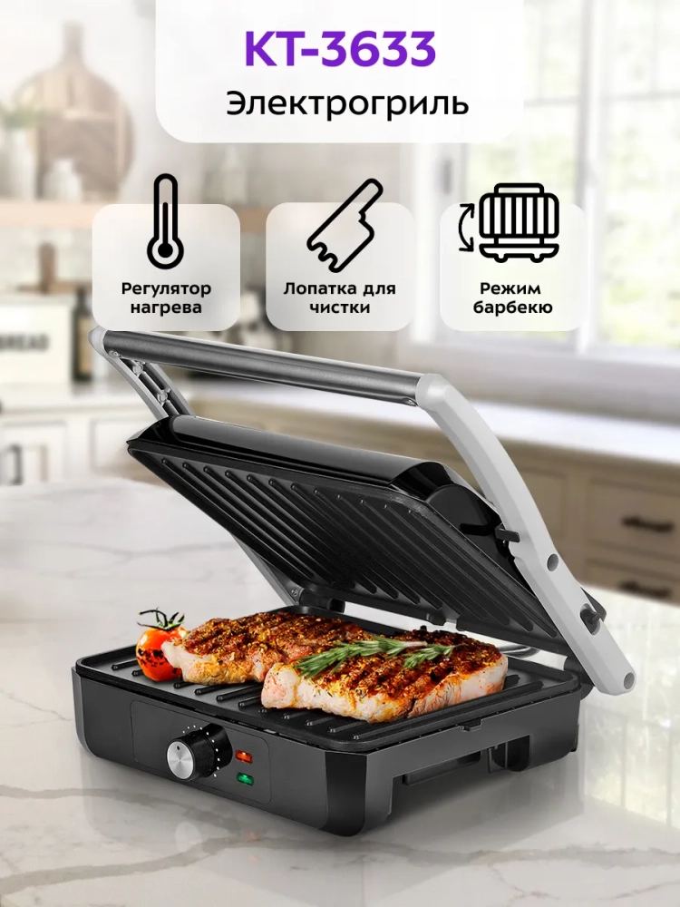 Электрогриль КТ-3633 двусторонний гриль электрический 2200Вт