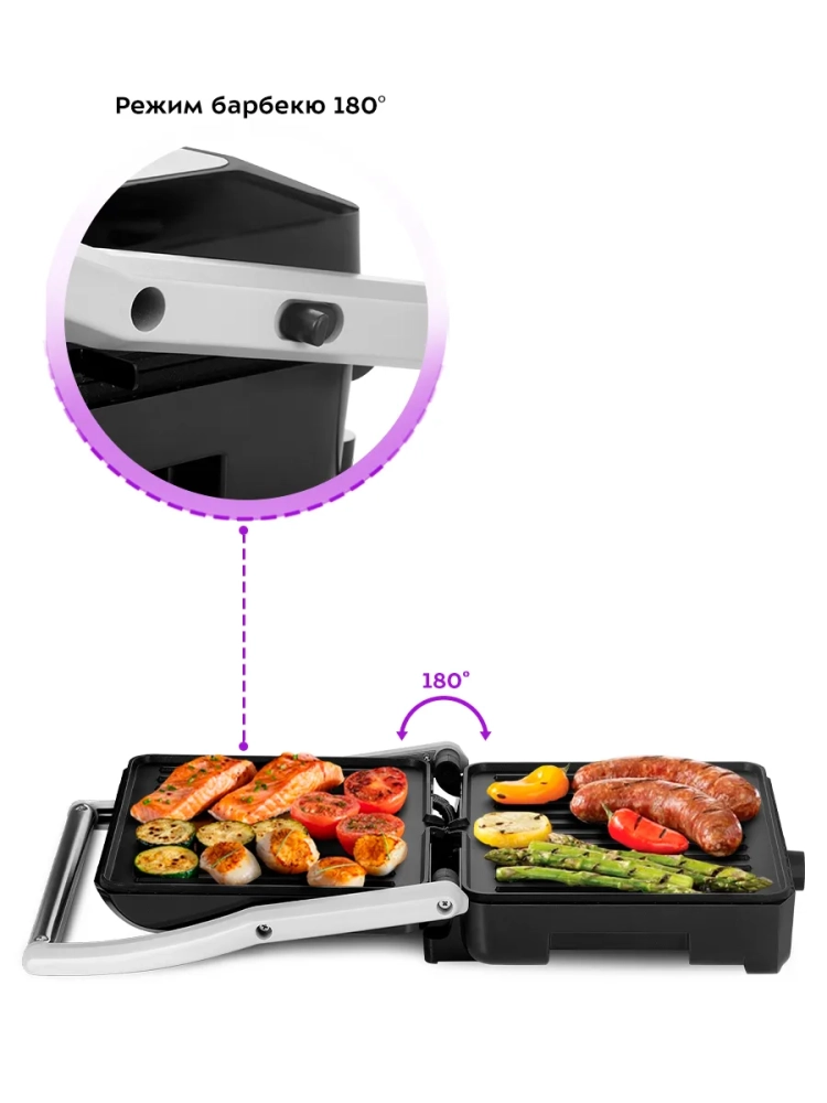 Специальный фиксатор сбоку гриля удерживает крышку в закрытом положении, что делает готовку, транспортировку и хранение более удобными.