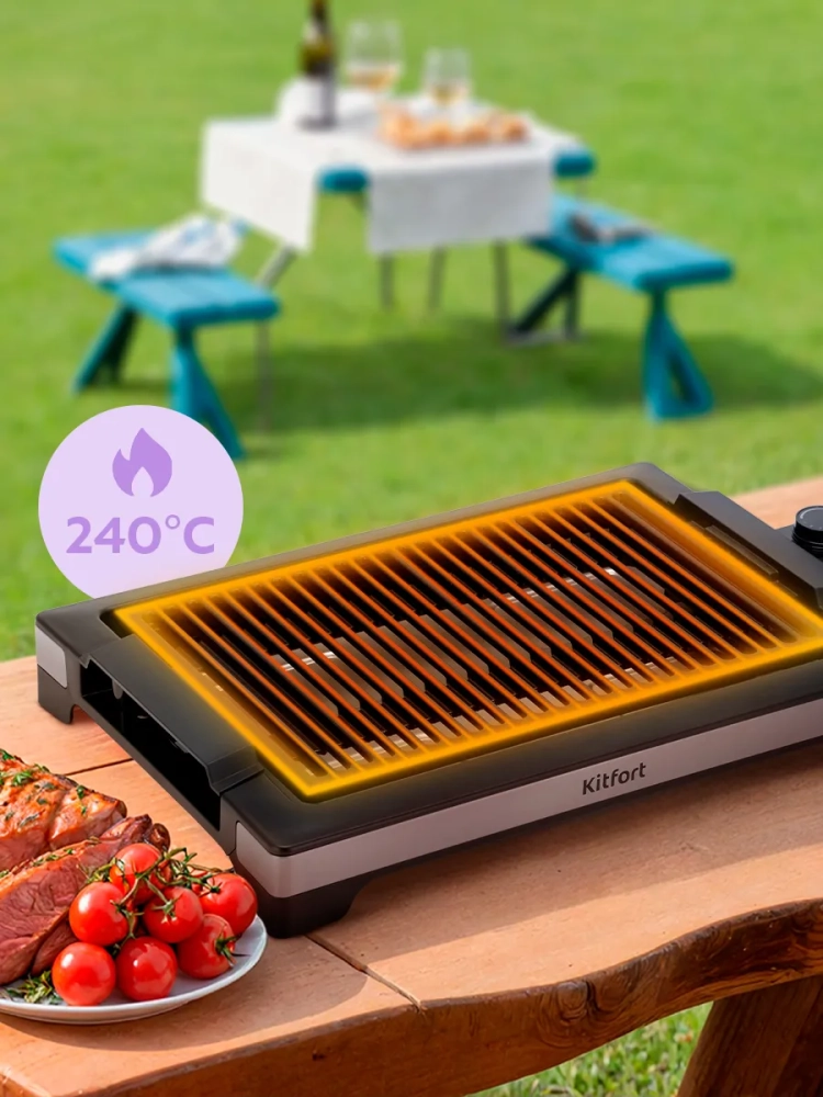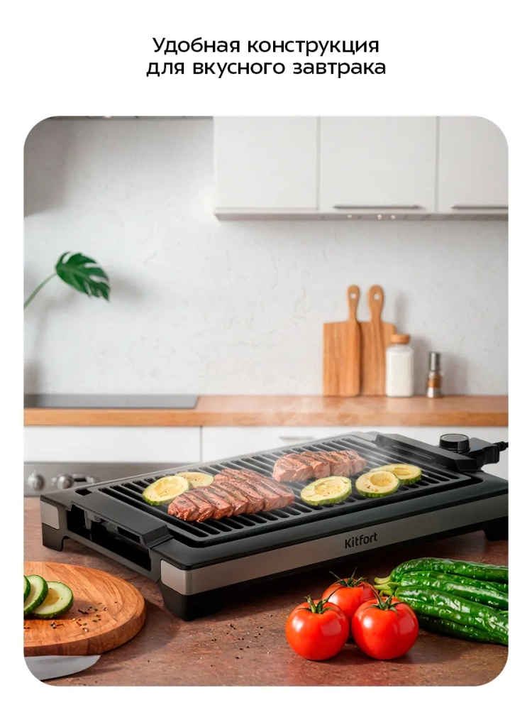 Электрогриль Kitfort КТ-4675 предназначен для приготовления мяса, рыбы, овощей, сосисок, бутербродов, панини, сэндвичей, тостов и многих других блюд. Высокая температура нагрева способствует быстрому приготовлению продуктов.