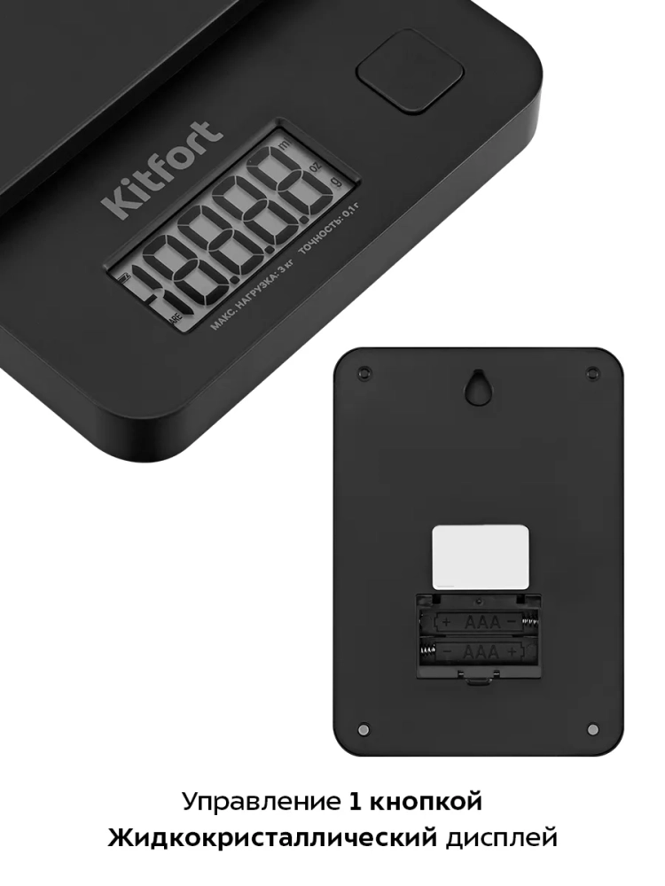 Весы работают от двух батареек типа ААА × 1,5 В.