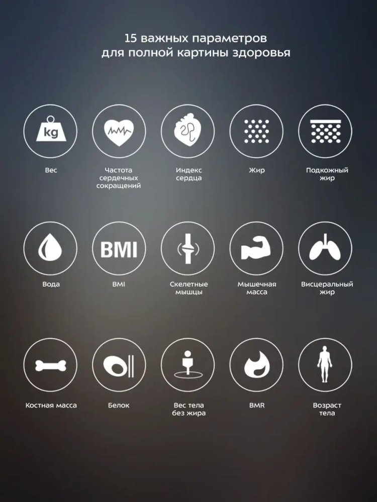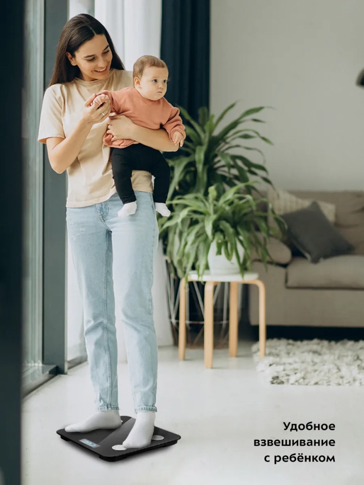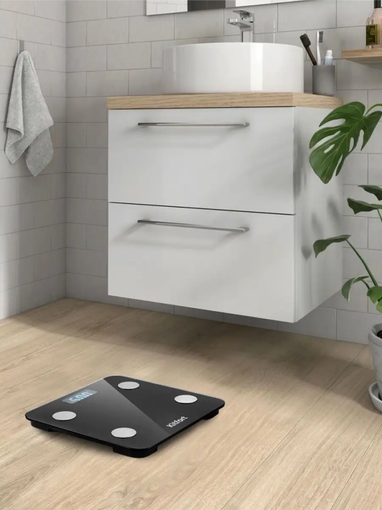 Электронные напольные весы с умными функциями KT-805 от Kitfort — это современное устройство для контроля веса и поддержания здоровья. Эти высокоточные весы обеспечивают точное измерение благодаря передовым технологиям. Идеальный подарок на любой случай: на Новый год, 23 февраля, 8 марта, день рождения, свадьбу или юбилей! Жидкокристаллический дисплей с крупными цифрами делает процесс взвешивания простым и удобным, а платформа из прочного полированного стекла и прорезиненные ножки гарантируют устойчивость и безопасность при использовании. Весы KT-805 поддерживают биоимпедансный анализ, позволяющий проводить диагностику состава тела через измерение электрического сопротивления различных участков организма, что помогает оценить состав тела на соответствие нормам здоровья. Для проведения анализа необходимо установить приложение “Fitdays” на мобильный телефон и включить Bluetooth для передачи данных. Умные весы автоматически активируются при вставании на них и выключаются после схода, фиксируя показания веса на дисплее. Приложение Fitdays отображает различные параметры: общий вес, индекс массы тела (ИМТ), мышечную массу, костную массу, баланс тела и уровень висцерального жира. Максимальная нагрузка этих электронных напольных весов составляет 180кг, что делает их подходящими для большинства пользователей. Весы Китфорт КТ-805 имеют стильный дизайн, который гармонично впишется в любой интерьер дома или офиса. Для работы устройства требуются две батарейки типа ААА. Эти умные напольные весы — идеальный выбор для тех, кто ценит точность измерений и современный функционал. Они позволяют не только контролировать свой текущий вес но также следить за изменениями в составе тела благодаря функции биоимпедансного анализа.