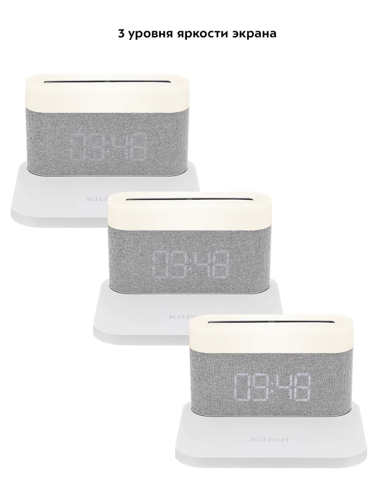 Настольные часы Kitfort KT-3373 состоят из настольных часов с подсветкой и беспроводной зарядки. Настольные часы выполняют сразу несколько функций: показывают время и дату, могут служить будильником и светильником. Благодаря беспроводной зарядке вы можете с легкостью заряжать телефон, часы или другие устройства, если они поддерживают функцию беспроводной зарядки. Устройство работает по стандарту Qi для индукционной передачи энергии. Многие современные смартфоны и умные часы поддерживают стандарт беспроводной зарядки Qi.