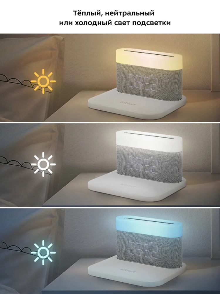 Яркость дисплея и подсветки настраивается, что очень удобно. Также подсветку и дисплей можно отключить. Вы можете выбрать цвет подсветки: теплый, нейтральный или холодный белый свет. Теплый белый свет чаще всего используют для жилых помещений, детских комнат и спален, он помогает отдохнуть и расслабиться, подготовиться ко сну. Холодный свет помогает сконцентрироваться, повышает эффективность работы, поэтому его часто используют в офисах, учебных заведениях и для освещения рабочих зон дома. Нейтральный свет не оказывает влияния на настроение человека, используется как в рабочих зонах, так и в жилых помещениях.