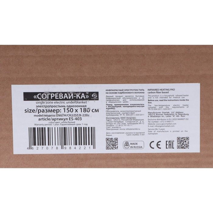 Электропростынь EcoSapiens ES-403, 60 Вт, 150х180 см, 30-55 °C, лавсан