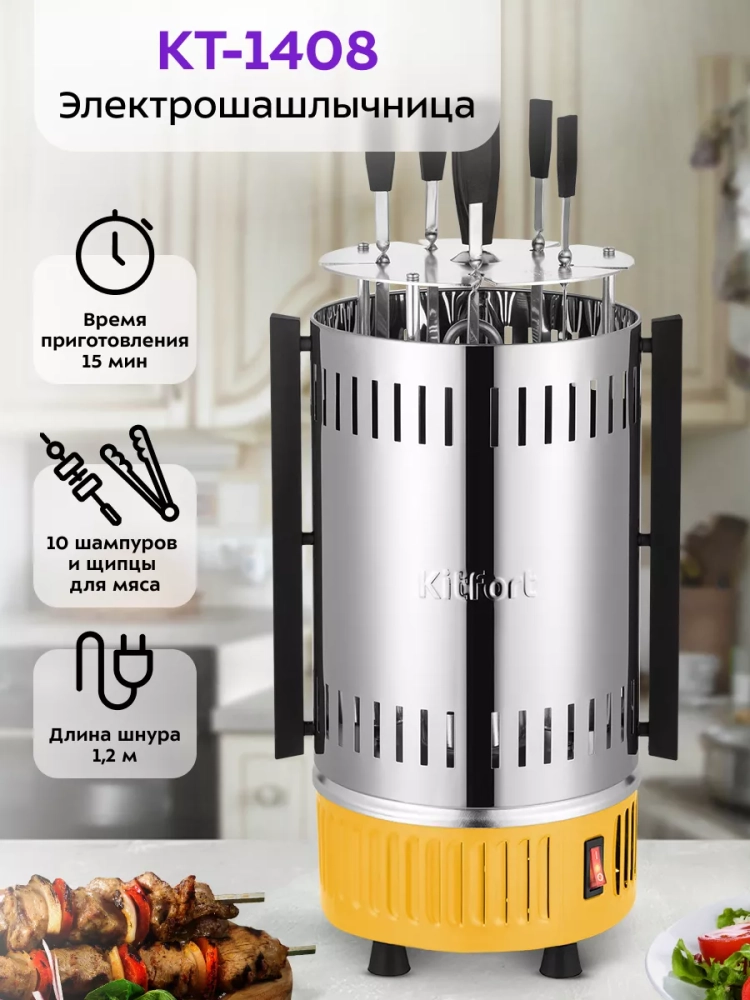 Электрошашлычница Kitfort КТ-1408 — это современный взгляд на приготовление шашлыков в домашних условиях. Вы сможете приготовить вкуснейшие блюда из мяса, птицы, рыбы или овощей всего за 15 минут, получив при этом массу удовольствия и множество восторженных комментариев о ваших кулинарных способностях.