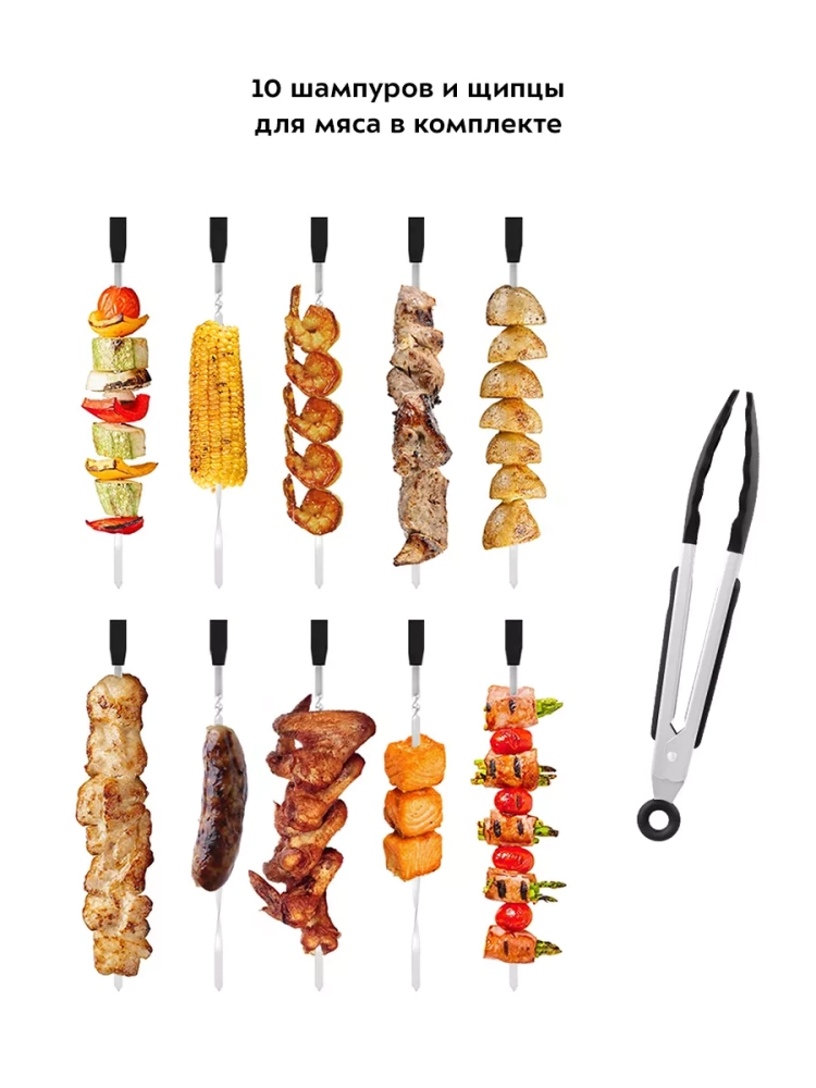Пять шампуров позволяют за один раз приготовить до 1,5 кг шашлыка.
