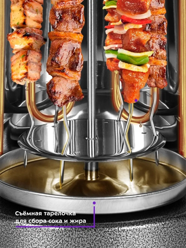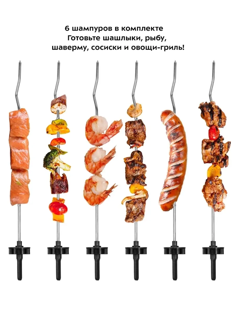 Электрошашлычница оснащена мощным нагревательным элементом, который обеспечивает быстрое и равномерное приготовление. В комплект входят шампура, которые позволяют готовить сразу несколько порций. Это бытовая техника, которая легко впишется в любую кухню, благодаря компактным размерам и стильному дизайну. Грильница проста в использовании и уходе, что делает её идеальным выбором для тех, кто ценит удобство и качество.