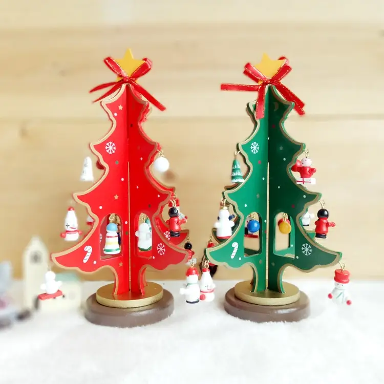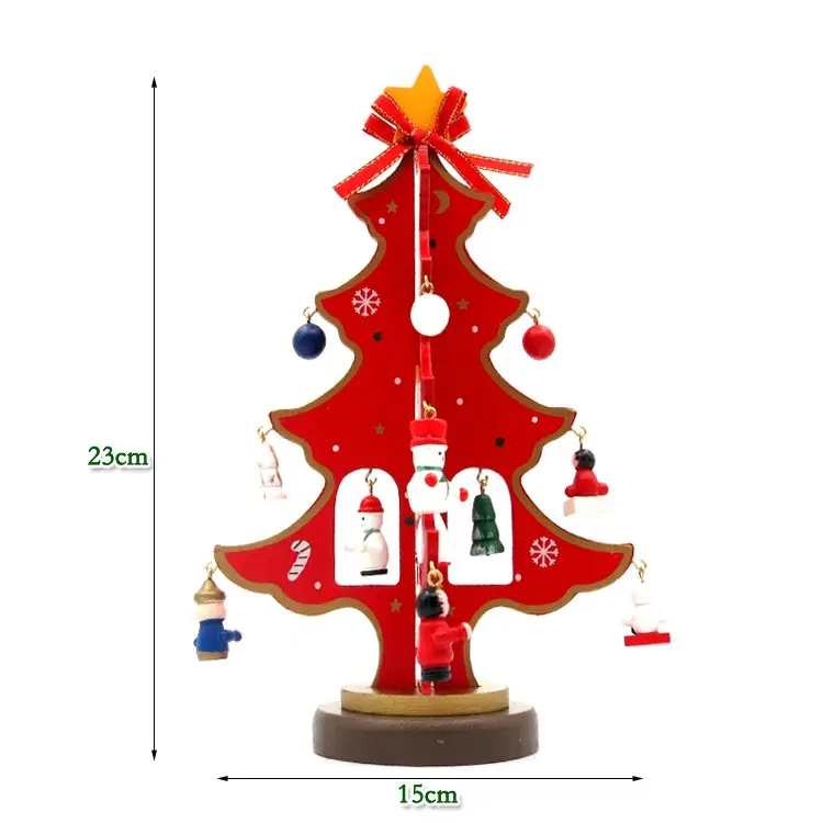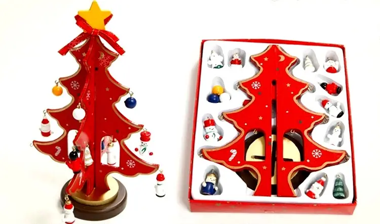 Елка деревянная настольная с игрушками, 23 см