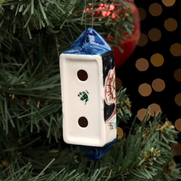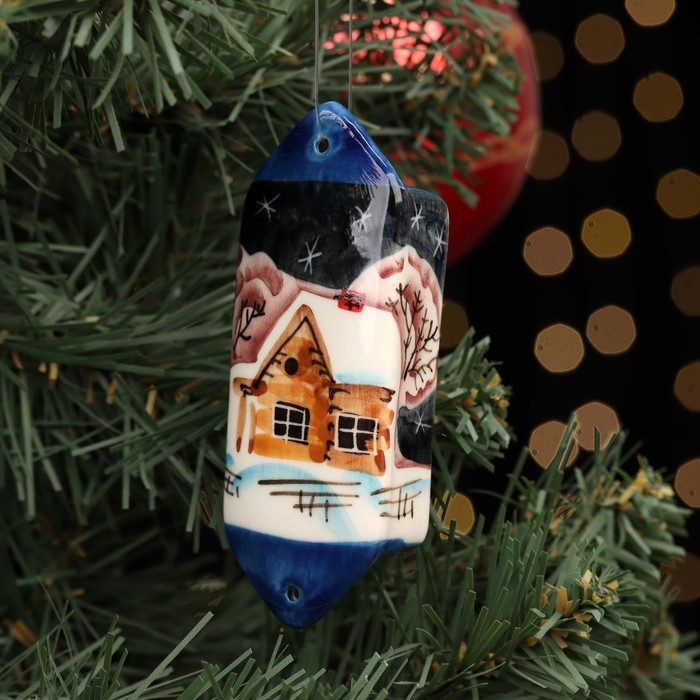 Ёлочная игрушка "Конфета зима ночь синяя", авторская роспись, 10 см, фарфор
