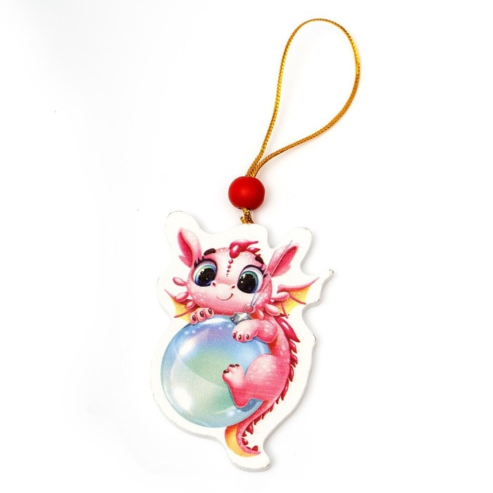 Ёлочная игрушка - подвеска деревянная «Новый год! Дракоша с шариком»