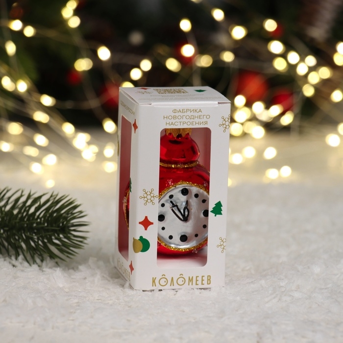 Ёлочное украшение "Часы - будильник", красный, в подарочной упаковке h- 8,5 см