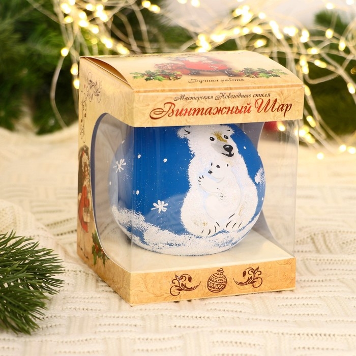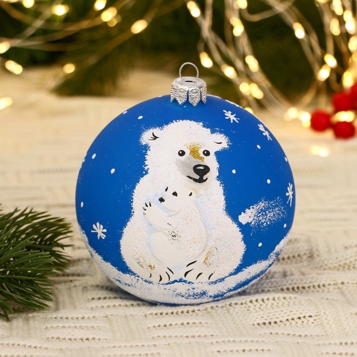 Ёлочный шар d-10 см "Белые медведи"