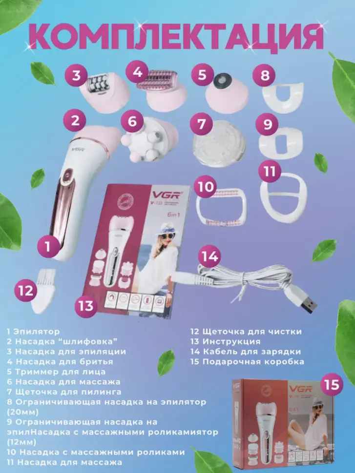 Эпилятор 6в1 VGR V-733 (цвет в ассортименте)