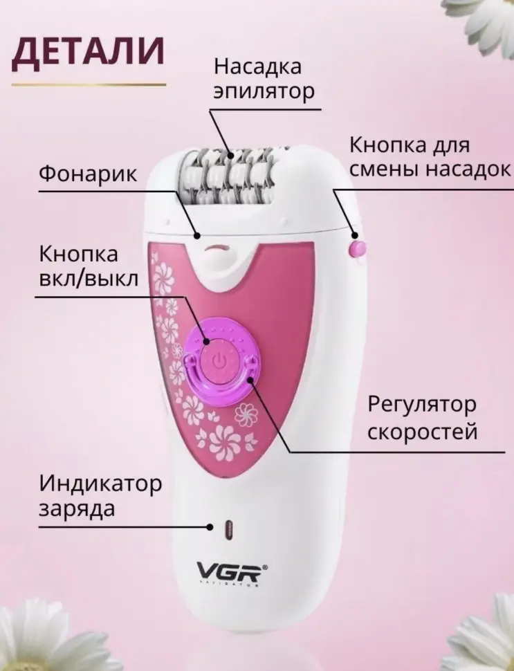 Эпилятор женский 2 в 1 VGR V-722 розовый