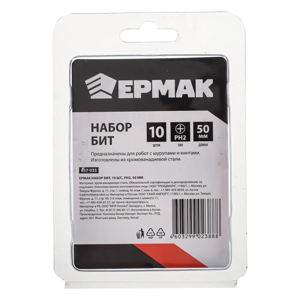 ЕРМАК Биты для шуруповерта PH2 длина 50 мм, 10 штук.