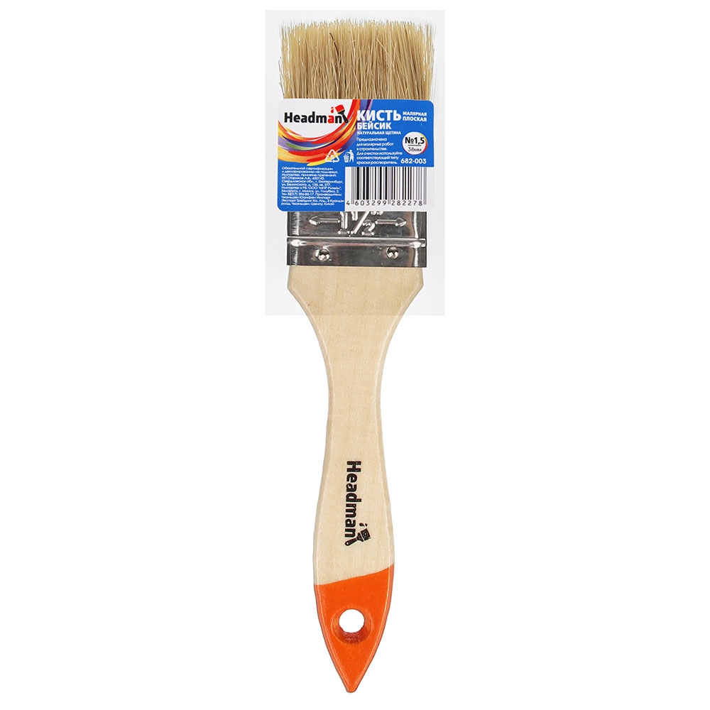 ЕРМАК/HEADMAN Кисть малярная плоская "Евро" нат. щетина 1.5" (38мм)