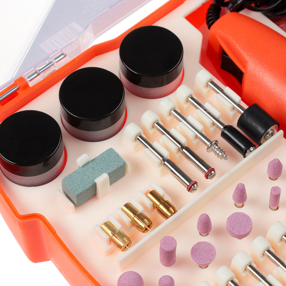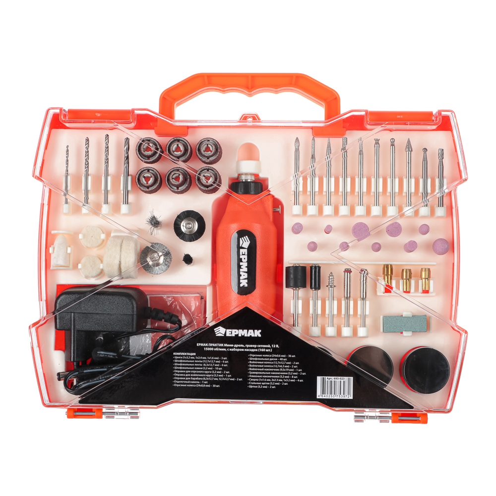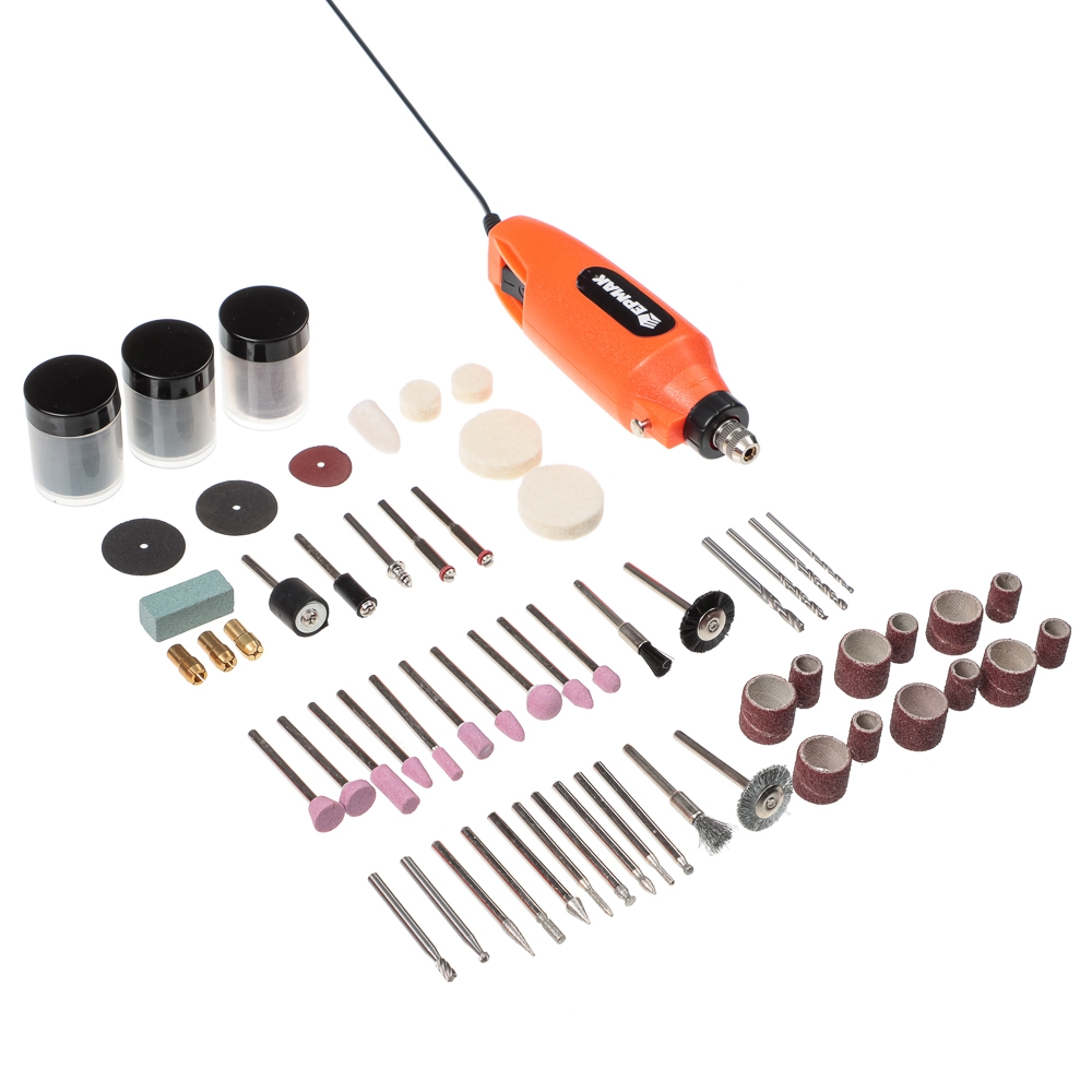 ЕРМАК Мини дрель, гравер, сетевой, 12В, 15000 об/мин, с набором насадок (160 шт.)