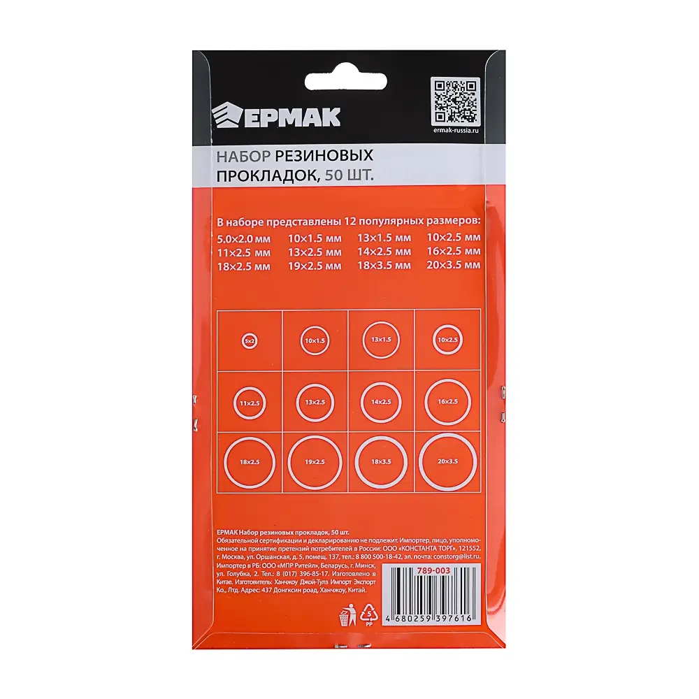 ЕРМАК Набор резиновых прокладок 50шт